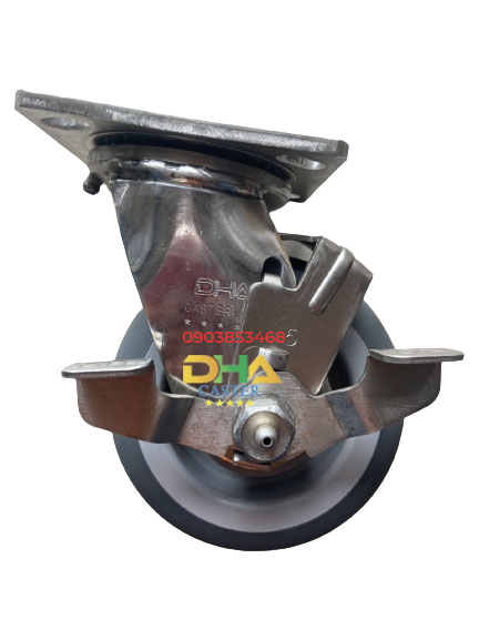 Bánh xe cao su 130x50 càng inox 304 khóa