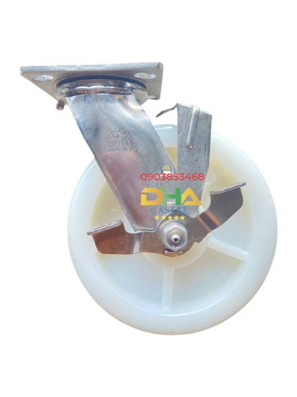 Bánh xe PA 8'' càng inox 304 khóa